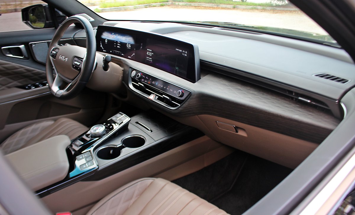 시작은 듬직했다. 운전석에 앉으면 보닛 양쪽으로 솟은 네모난 굴곡이 시야 아래를 채우며 길쭉한 존재감을 드러낸다. 그리고 넓다. 본래 전체 너비가 1875mm로 넓은데, 대시보드와 문짝이 둥글게 이어져 공간감이 더욱더 크다. 현대 1세대 에쿠스 전 차주로서 자존심 상하는 얘기지만(오래됐어도 브랜드 기함이었다) K8 주행 느낌은 에쿠스를 쏙 빼닮았다. 커다란 덩치감은 물론 낭창낭창한 승차감에 에쿠스 타던 기억이 새록새록 떠오른다. 자잘한 노면 진동은 거의 느낄 수 없고, 과속방지턱을 넘을 땐 느긋이 보닛을 흔들며 충격을 둥글린다. 이전 세대까지만 해도 짙게 풍기던 중형 세단 냄새를 완전히 지웠다.