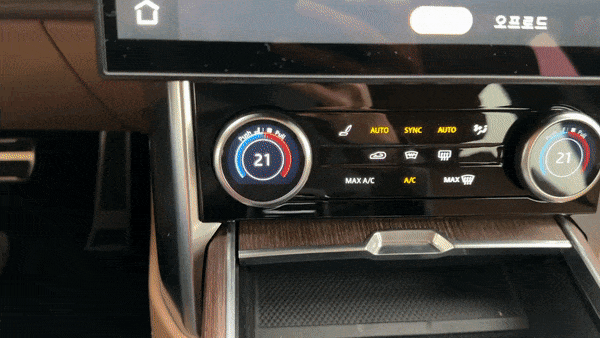 레인지로버는 디자인과 실용성을 동시에 잡았다. 하나의 물리 버튼으로 열선·통풍 시트, 온도, 풍량 조절을 동시에 할 수 있게 설계했다. 그냥 버튼을 돌리면 온도가 조절되고, 버튼을 누르고 돌리면 시트가 조절된다.