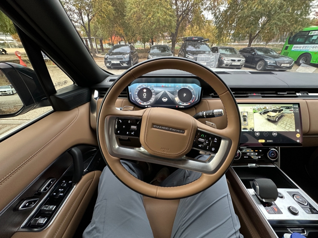 내부도 플래그십 SUV다웠다. 시트부터 운전대 촉감까지 가죽과 스웨이드로 뒤덮여 어느 한 곳 고급스럽지 않은 곳이 없었다. 센터페시아의 터치스크린도 타 랜드로버 차량과 구성은 비슷할지라도 크기가 훨씬 컸다. 내비게이션을 보다가 너무 커서 적응해야 할 시간이 필요할 정도였다.