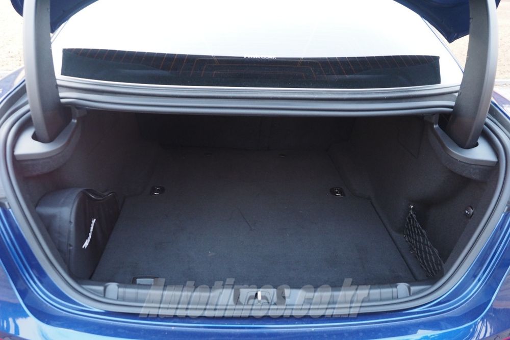 이 외의 뒤에 붙은 거대한 패들 시프트는 차 성격을 알게 해준다. 센터페시아 모니터는 꽤 크다. 안쪽 인포테인먼트 구성은 물론 조작법도 편리해 라이벌과 비교해도 전혀 뒤쳐지지 않는다. 반면 공조 장치 버튼은 살짝 올드하다. 개수도 많고 조작감도 좋은편은 아니다.
