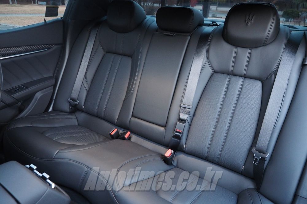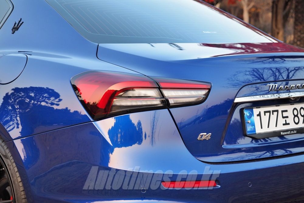 뒤는 부메랑 모양의 LED 테일램프가 시선을 끈다. 신형의 가장 큰 특징으로 3200GT와 알피에리 컨셉트카에서 영감을 받아 그려 넣었다. 가장자리는 블랙, 중앙에는 레드, 하단 섹션은 투명하게 구성되며 세 가지 색상의 렌즈로 유닛이 구성됐다. 모터스포츠 역사와 함께해 온 마세라티 DNA가 인상적으로 반영된 부분이라고 할 수 있다.