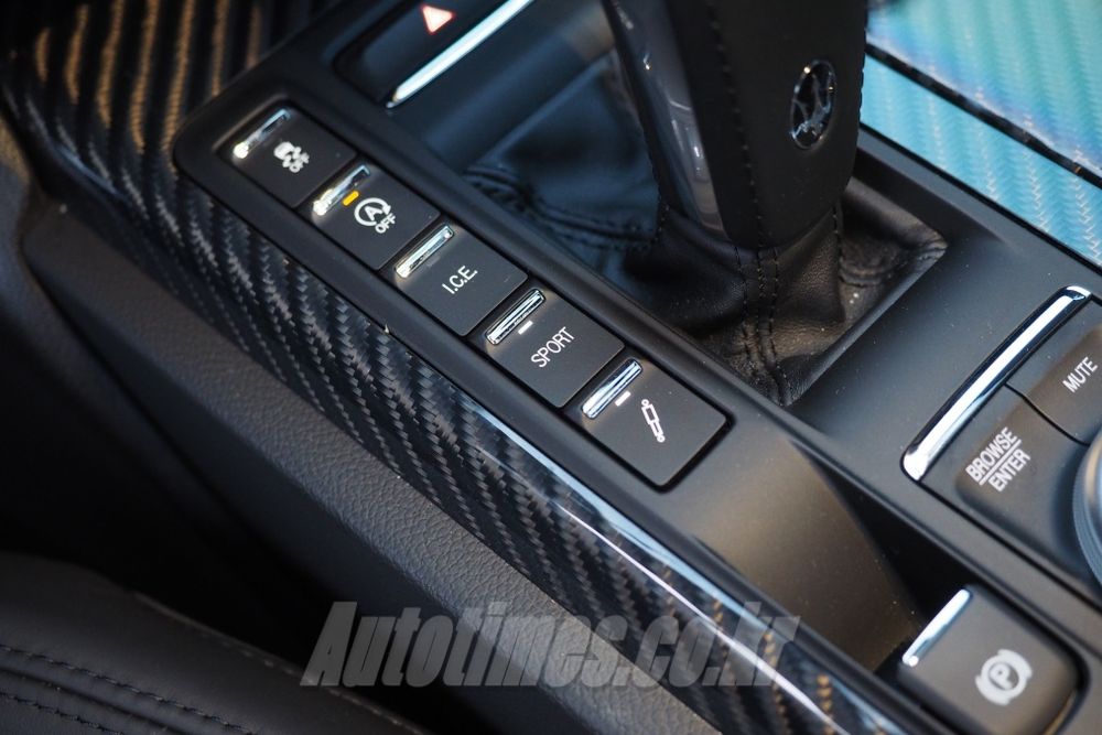 아래쪽에 있는 휴대폰 무선충전패드와 각종 충전 소켓은 수납 형식으로 마련됐다. 길쭉한 변속기에 가려 사용이 편하진 않다. 센터 터널은 깔끔하다. 주행에 필요한 버튼 들로만 일목요연하게 정리 해놨다. 여기에 이단 케이크가 연상되는 조그셔틀도 센스 있는 구성이다.