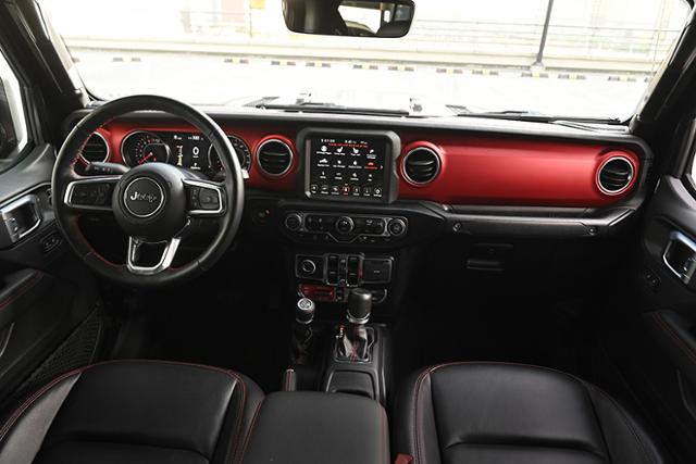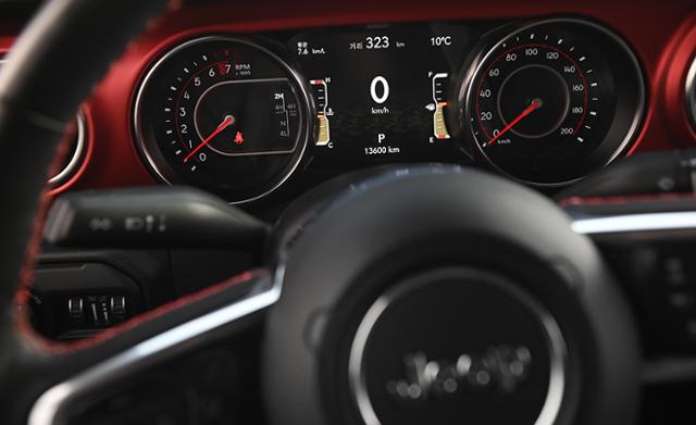 수직으로 서 있는 듯한 대시보드의 구성이나 공간 활용성을 높이는 센터페시아 및 아날로그 스타일의 패널 연출, 그리고 계기판과 스티어링 휠은 물론이고 각종 소재의 활용이나 기능 등에 있어서도 지프 랭글러 루비콘과 완전히 동일한 모습을 갖췄기 때문이다.