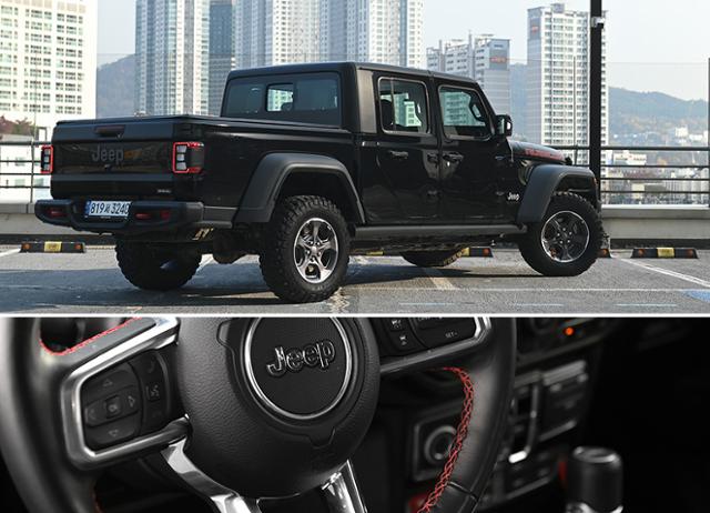 글래디에이터 루비콘(이하 글래디에이터)는 말 그대로 랭글러를 확장시킨 차량으로 거대한 체격, 육중한 존재감을 과시한다.