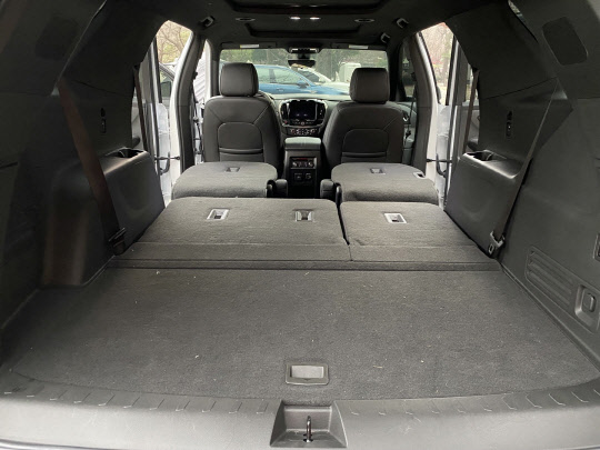 쉐보레 트래버스 하이컨트리 트림 2·3열 폴딩 모습. 장우진 기자