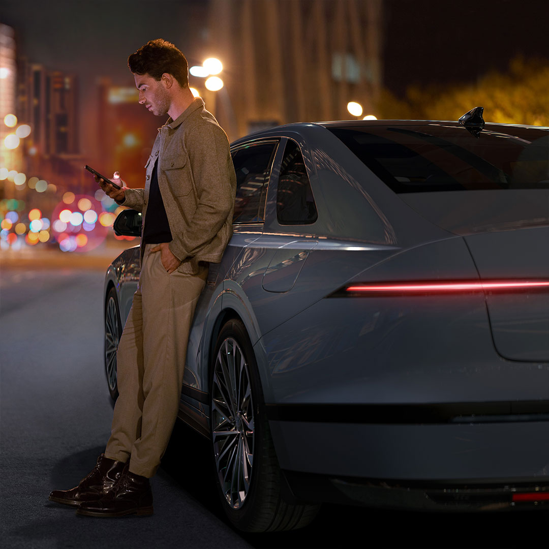 전면부는 한 줄로 연결된 수평형 LED 램프와 대형 그릴이 우주선 같은 느낌을 떠올리게 한다. 옆 모습은 실제 길이보다 더 길어 보인다. C필러(지붕과 트렁크를 잇는 기둥)의 '오페라 글래스'도 1세대 그랜저를 떠올리게 한다. 이는 뒷좌석 승객의 측면 시야를 확보하면서, 고급스러운 느낌을 강조한다.