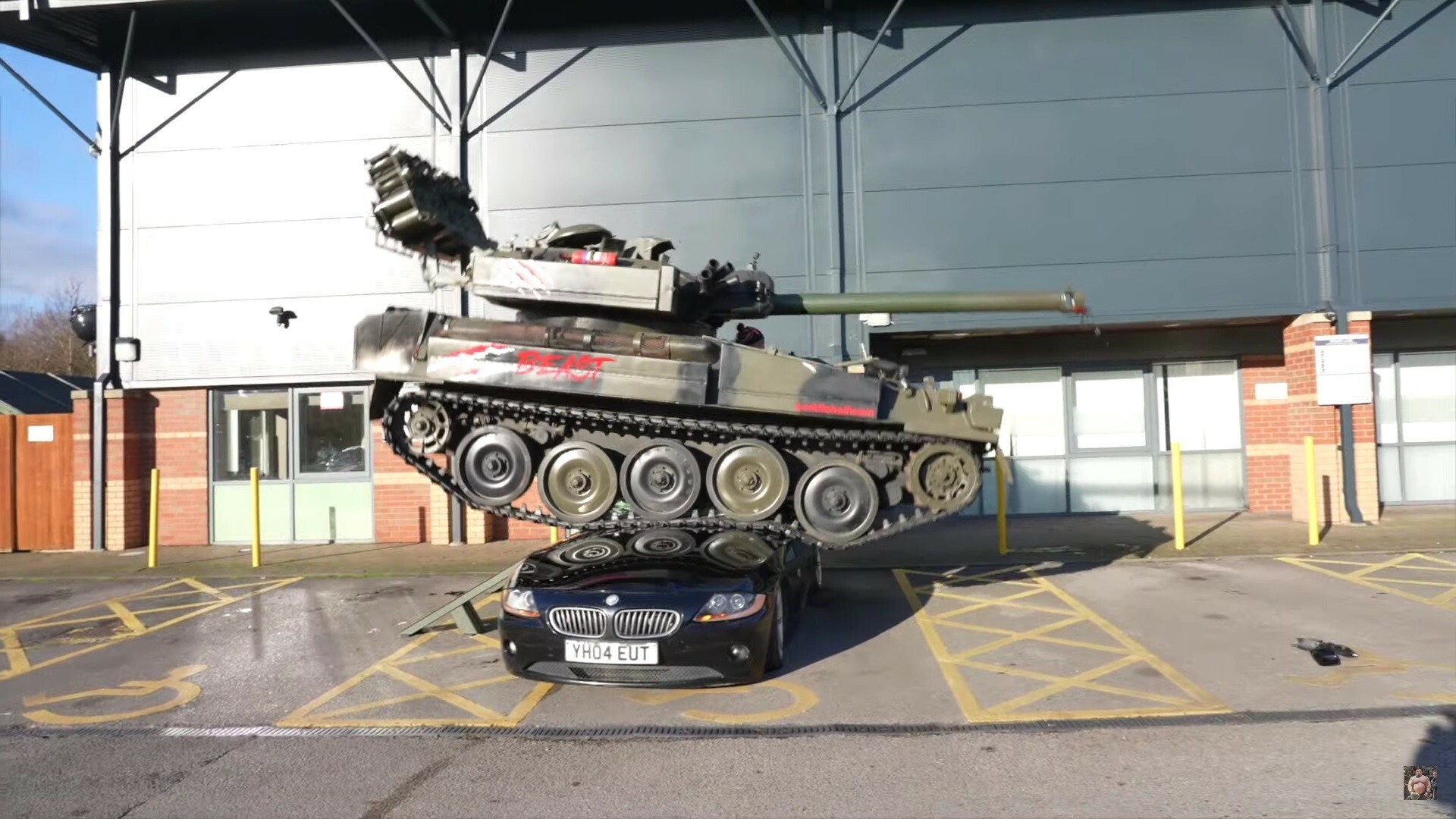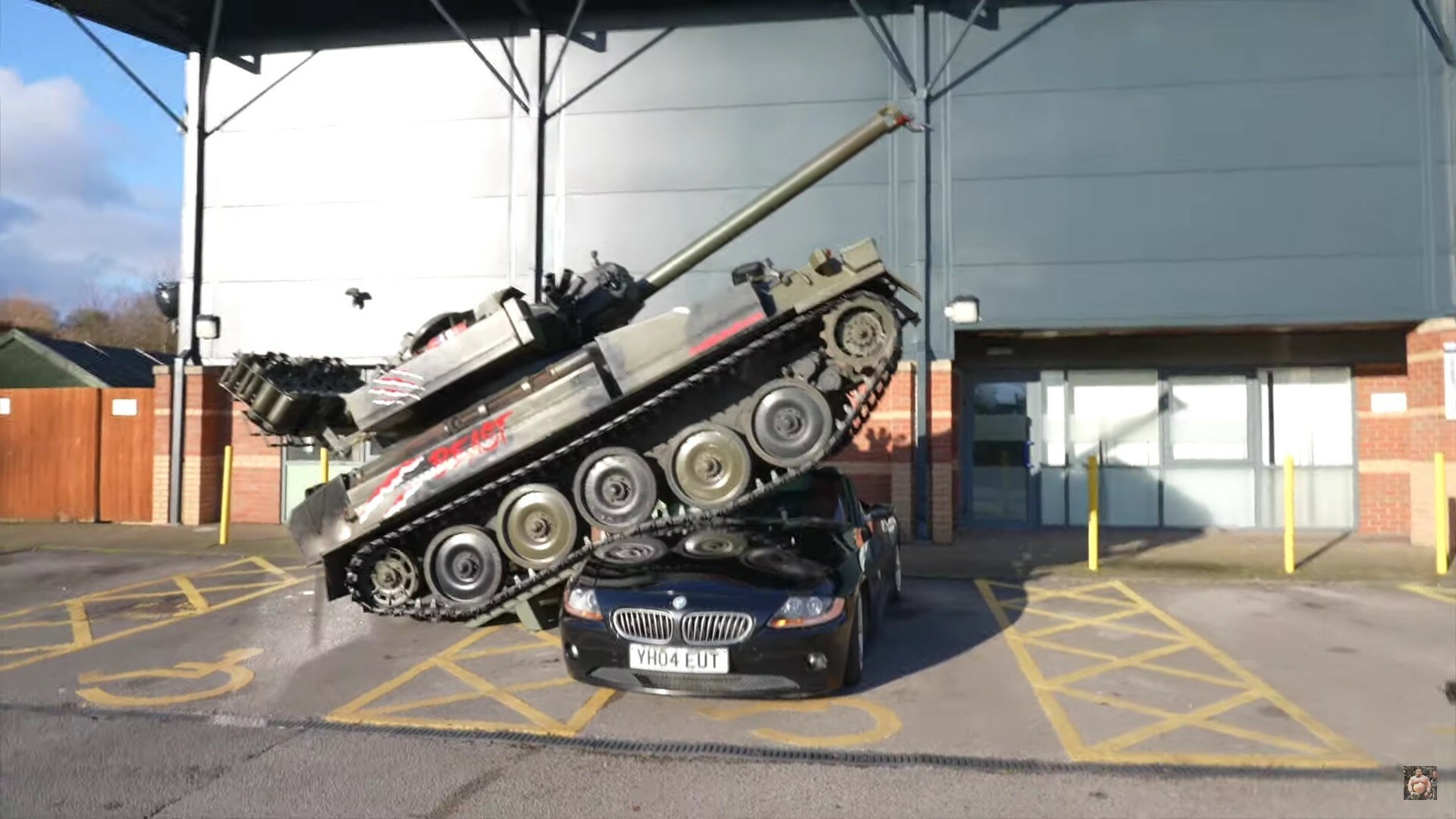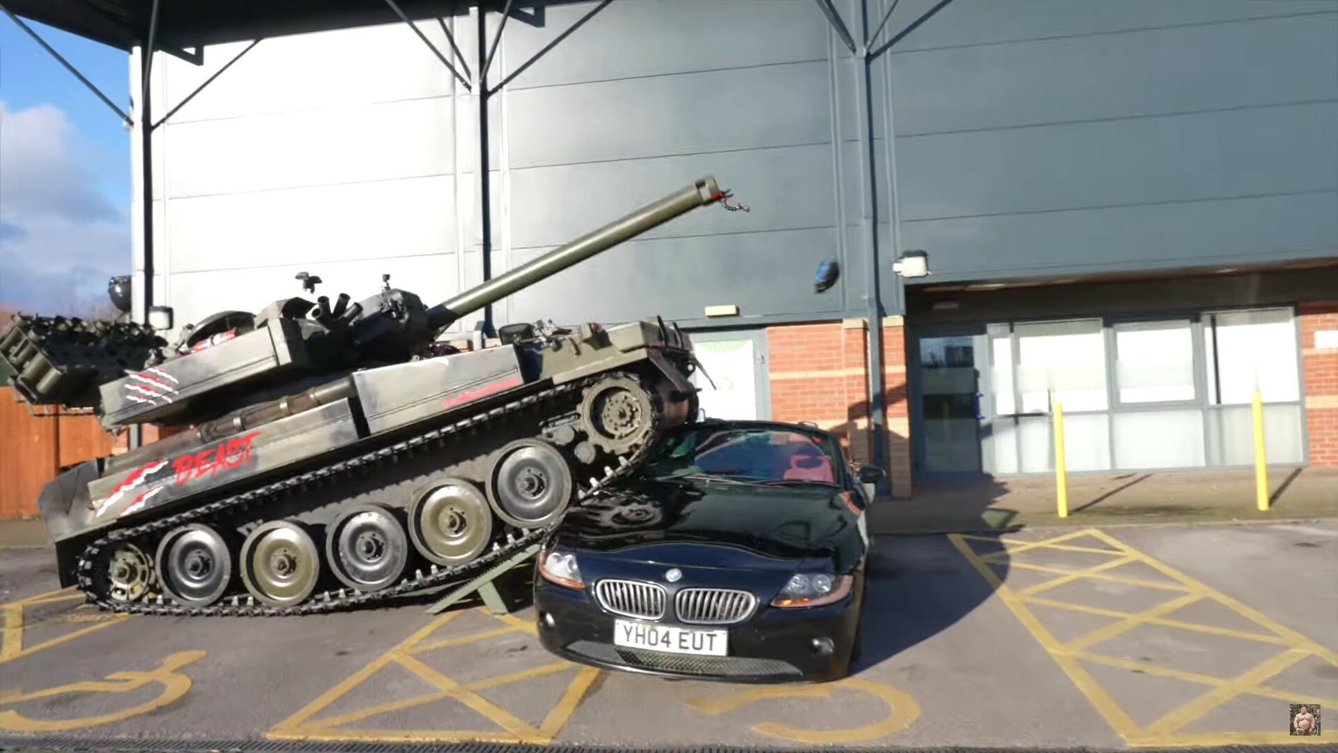 8톤짜리 탱크가 두 번이나 위에 올라탔지만, BMW Z4는 끄떡없었고 놀랍게도 이후에도 주행할 수 있었다.