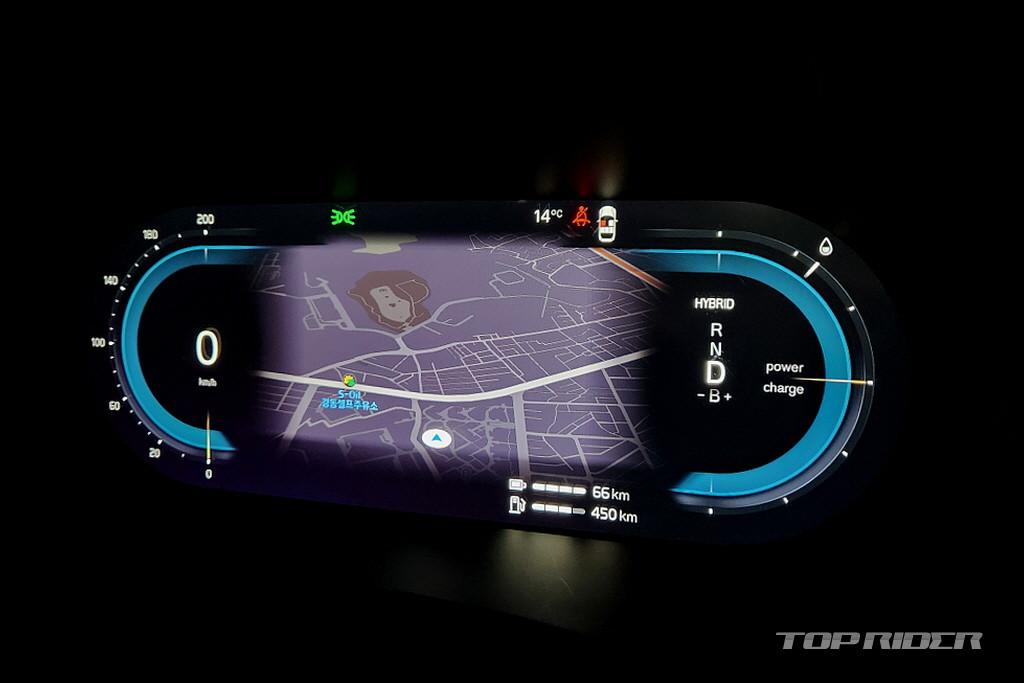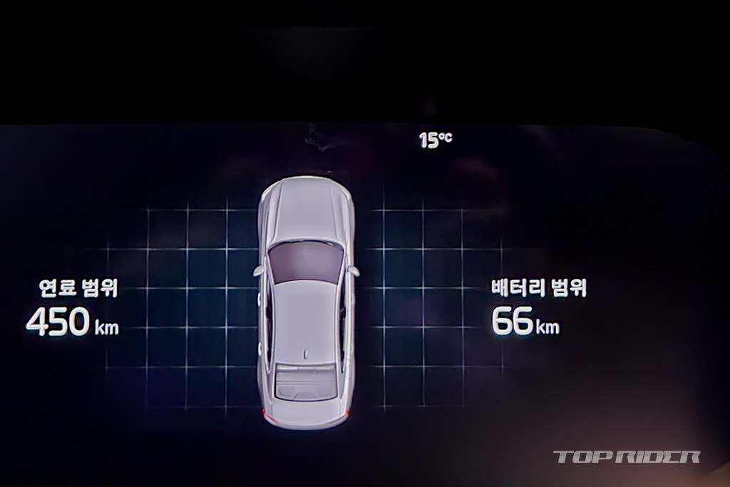 전기 주행거리는 59km, 전기 복합전비 3.0kWh(도심 3.0, 고속 2.9)다. 플러그인 하이브리드 모델은 여느 하이브리드와 다르게 전기와 내연기관 연비가 따로 표기된다. 전기 충전량과 설정에 따라 다양한 연비가 측정되는데, 충전량 유지 모드에서는 14~16km/ℓ 수준이다.