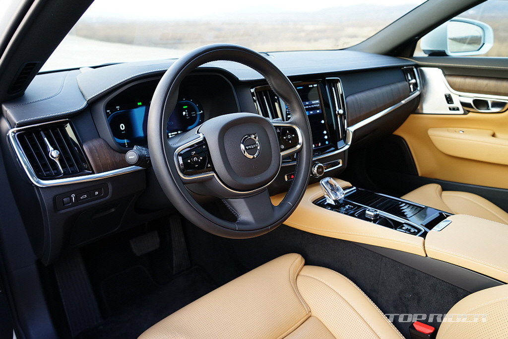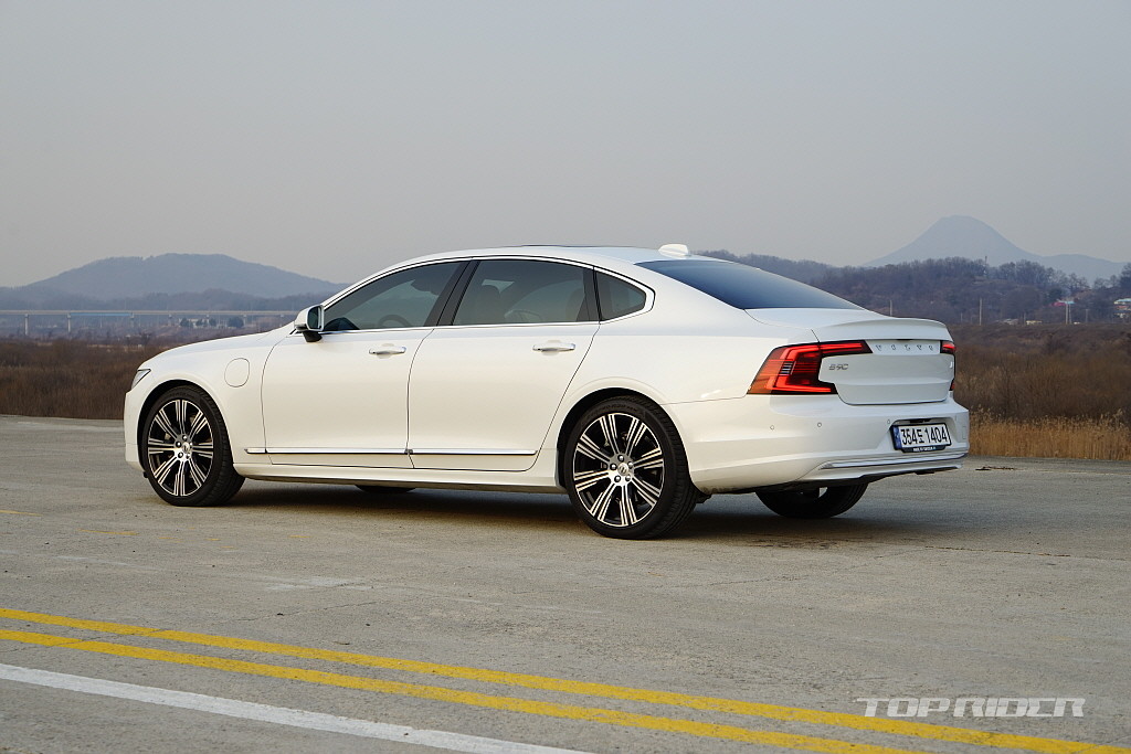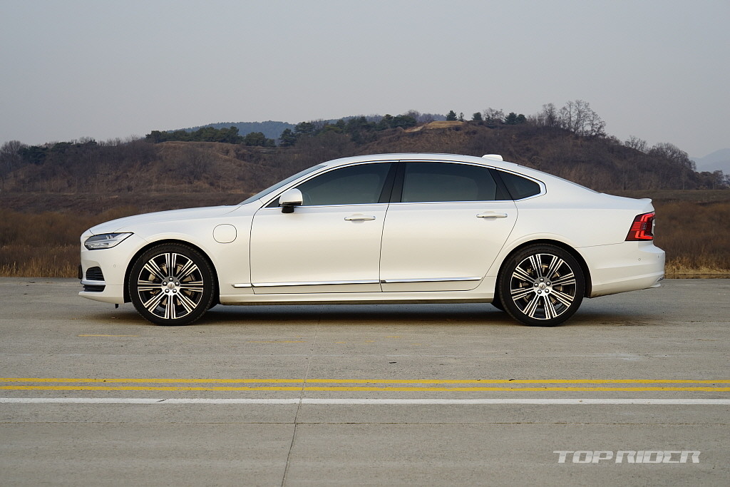 볼보 신형 S90 리차지 플러그인 하이브리드(Recharge PHEV)를 시승했다. 지난 4월 국내에 출시된 신형 S90 PHEV는 롱레인지 배터리 탑재로 전기모드(EV) 주행거리가 대폭 늘어난 것이 특징이다. 또한 에어 서스펜션을 적용해 8천만원대에서는 눈에 띄는 경쟁력을 지녔다.