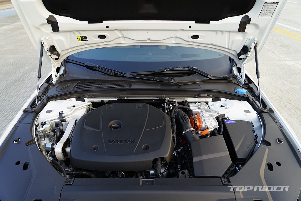 S90 리차지에는 2.0리터 가솔린 터보엔진과 전기모터로 총 시스템 출력 455마력, 합산 토크 72.3kgm를 발휘하며, 8단 자동변속기와 AWD 사륜구동 시스템이 조합된다. 100km/h 정지가속은 4.8초다. 공차중량 2145kg, 국내 복합연비 11.9km/ℓ(도심 11.2, 고속 12.8)이다.