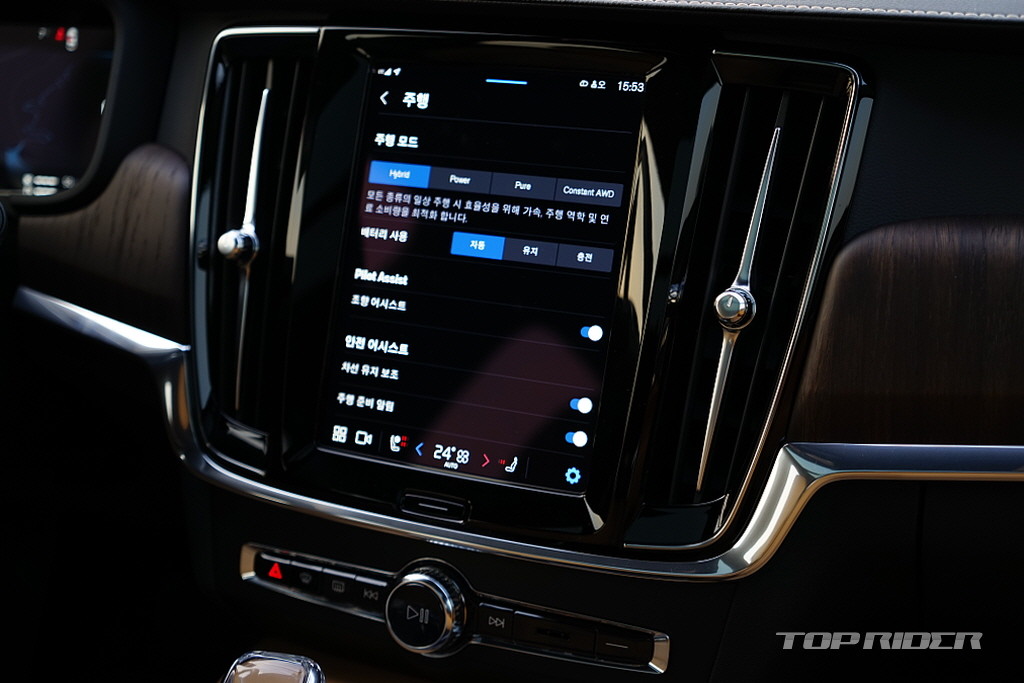 일상주행에서 S90 리차지는 S90 마일드 하이브리드와 비교시 승차감과 주행질감이 상당히 다르다. 전기만으로 주행하는 상황에서 엔진 구동에 따른 소음과 진동이 전혀 없기 때문인데, 여기에 후륜 에어 서스펜션까지 더해져 부드러운 승차감과 정숙성이 꽤나 인상적이다.
