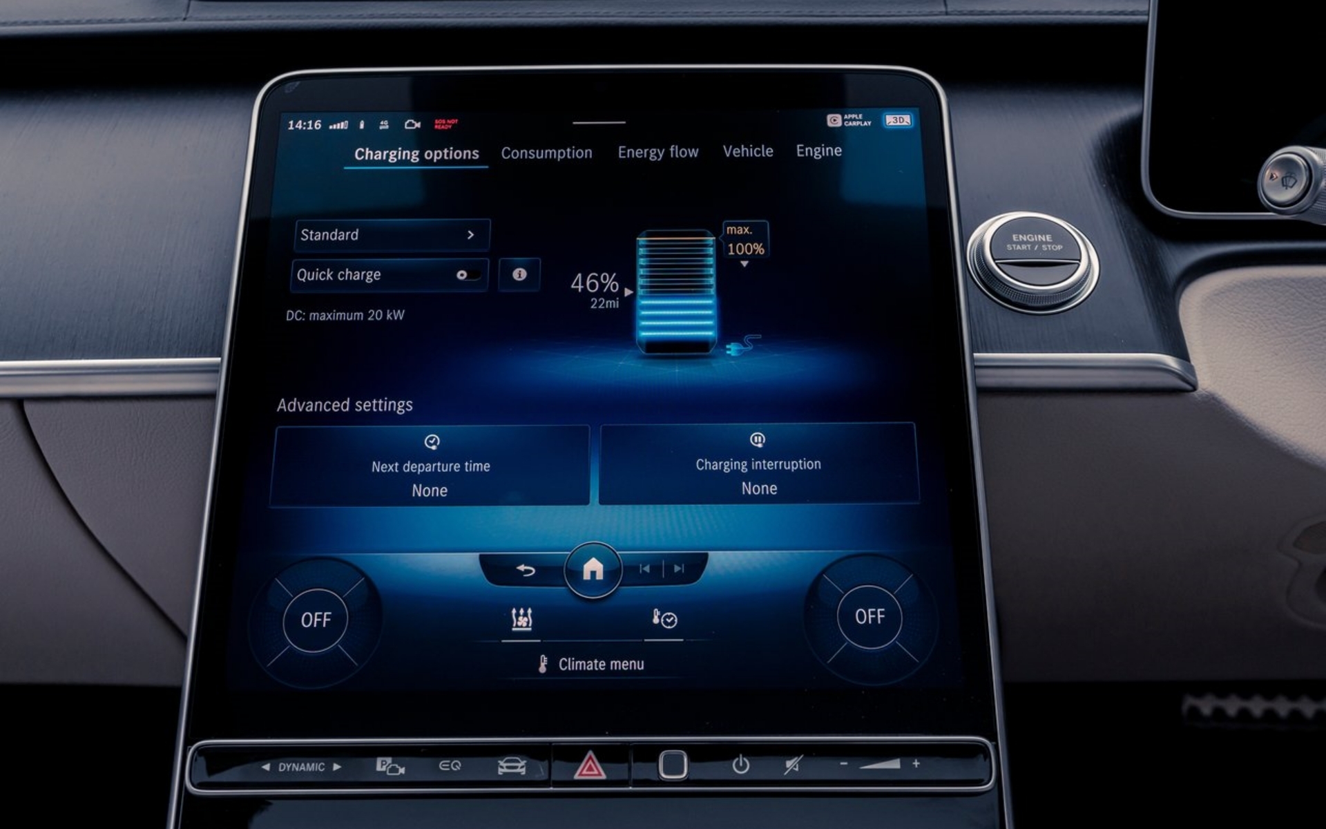 실내 1열에는 12.3인치 디지털 계기판과 최신 MBUX 인포테인먼트 시스템을 넣은 12.8인치 중앙 디스플레이를 달았다. 여기에 PHEV 전용 그래픽을 넣어 차별화했다. 운전석엔 나파 가죽으로 마감한 다기능 스티어링 휠과 증강현실 헤드업 디스플레이(HUD)를 넣었다. 2열에는 7인치 MBUX 태블릿과 11.6인치 뒷좌석 엔터테인먼트 화면을 마련했다. 동반석 시트를 앞으로 밀어내 2열 공간을 확보하는 ‘쇼퍼 패키지’는 기본이다.