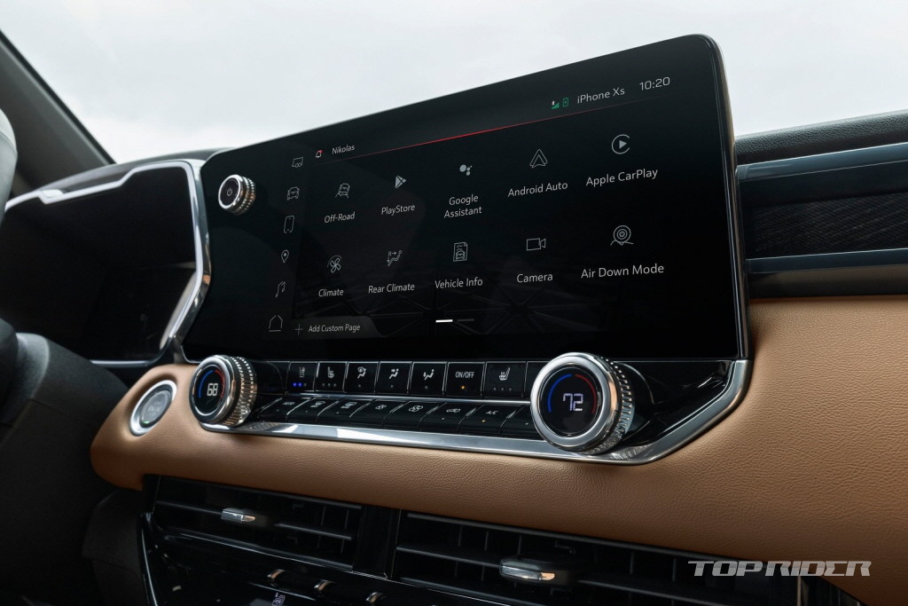 드날리(Denali)는 럭셔리함이 강조된 최상위 트림이다. 가격은 5만2495달러(약 6700만원)다. 드날리에는 11인치 디지털 계기판과 BOSE 오디오 시스템, 6.3인치 멀티 컬러 헤드업 디스플레이, 어댑티브 크루즈 컨트롤 등이 탑재됐다. 20인치 휠 등 전용 디자인이 제공된다.
