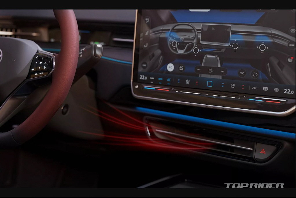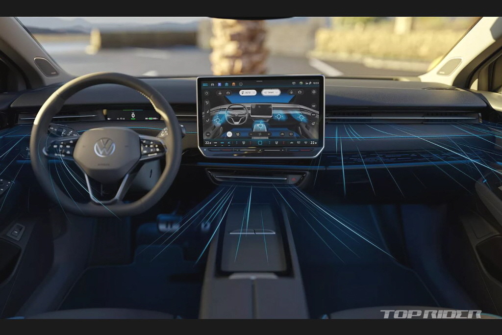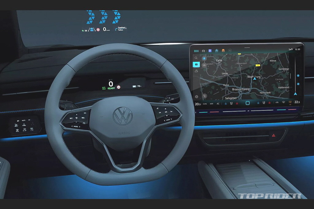 실내에는 태블릿 PC 스타일의 15인치 센터페시아 디스플레이, 대시보드에 통합된 디지털 계기판, 터치 슬라이딩 방식의 공조기 및 볼륨 등이 탑재됐다. 스티어링 휠 버튼은 터치식에서 버튼식으로 변경될 예정이다. 헤드업 디스플레이는 폭스바겐 증강현실 기능을 지원한다.