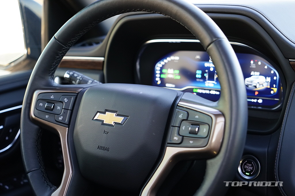 에어 서스펜션과 마그네틱 라이드 컨트롤이 조합된 타호의 서스펜션은 미국에서는 추가 옵션으로 구분된다. 차고 조절은 물론 노면 상황을 1/1000초로 스캔해 감쇄력을 실시간으로 조율한다. 무거운 차체와 비교적 부드러운 서스펜션 셋업은 중형 SUV와는 다른 경험이다.