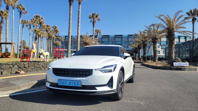 지난달 26일 제주도내에서 시승한 폴스타2 롱레인지 싱글모터. 제주=김형준 기자