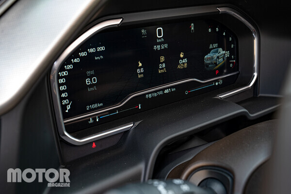 처음에는 픽업트럭이라고 얕봤는데, 가죽 시트도 그렇지만 실내에서 사용할 수 있는 기능들도 자동차의 발전에 맞추어 직관적으로 사용할 수 있는 최신 기술들로 들어갔다. 그 기술을 직관적으로 느낄 수 있는 첫 번째가 거대하고 선명한 15인치 HUD다. 다른 승용차에서도 일찍이 체험은 했지만, 설마 픽업트럭에서 HUD를 사용할 수 있다고는 생각하지 못했다.