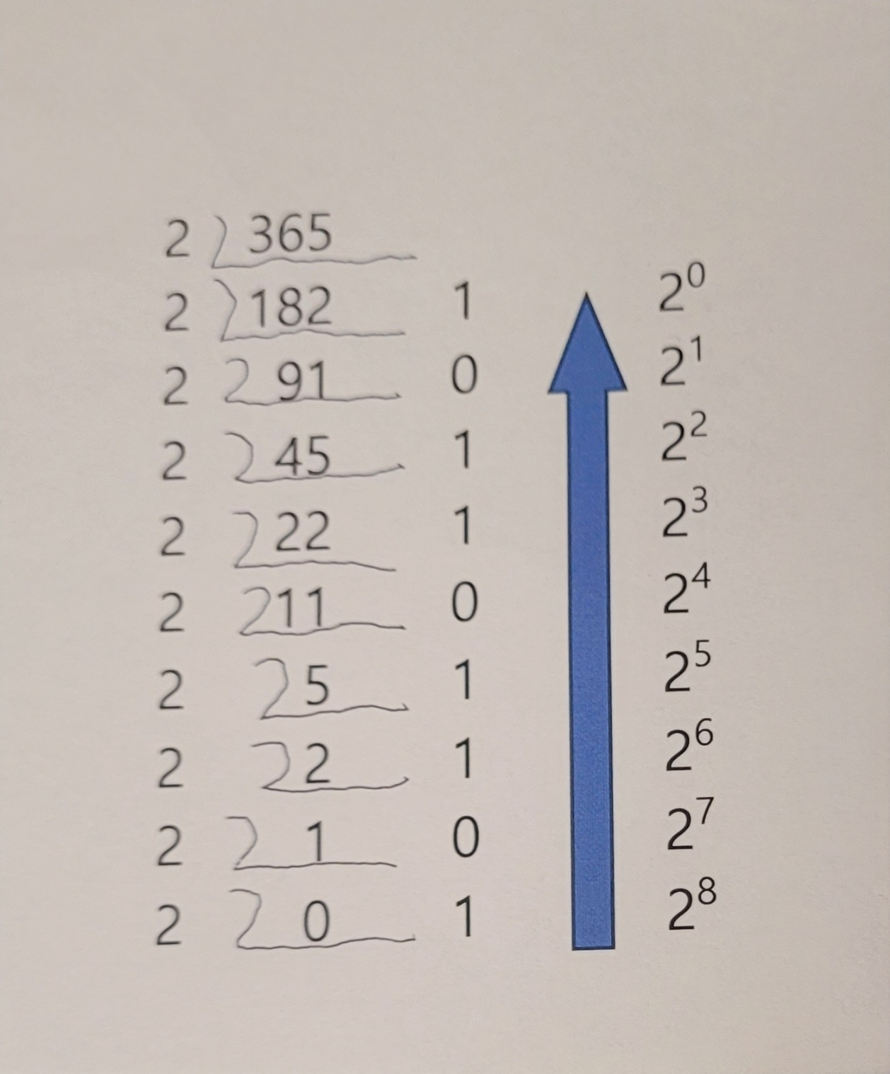 101101101 = 1x28+0x27+1x26+1x25+0x24+1x23+1x22+0x21+1x20 = 365
