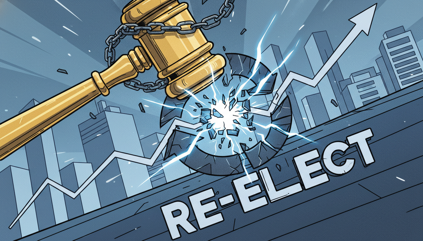무기한 연임을 제한하는 금융지주 회장 3연임 금지법의 핵심을 상징하는 이미지