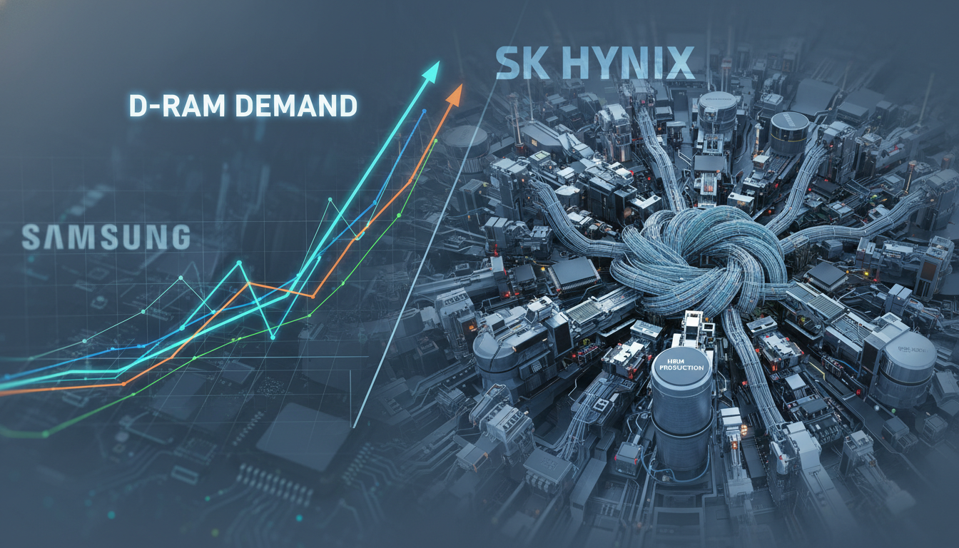 메모리 반도체 시장의 양대 산맥인 삼성전자와 SK하이닉스는 HBM 시장의 주도권을 잡기 위해 치열하게 경쟁하고 있어요. SK하이닉스는 HBM 시장을 선점하며 괄목할 만한 성과를 내고 있고, 삼성전자는 그 뒤를 바짝 쫓으며 빠르게 점유율을 확대하고 있죠. 양사 모두 HBM 생산 비중을 꾸준히 늘려가고 있지만, 문제는 여기서 발생해요. HBM 생산량이 늘어날수록 일반 D램 생산 라인은 줄어들 수밖에 없는 구조거든요. 이게 바로 '행복한 고민'이 아니라 '비상 상황'으로 연결되는 지점입니다.